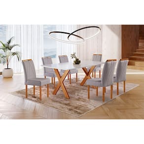Conjunto Sala de Jantar 6 Lugares Lorena Mesa e Cadeiras Madeira Macica - Moveis Mix