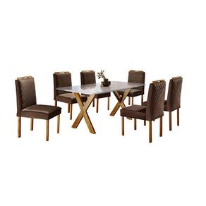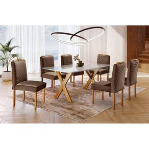 Conjunto Sala de Jantar 6 Lugares Mesa Munique e Cadeiras Imperatriz Veludo Móveis Mix - Marrom