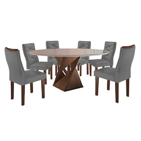 Sim, especialmente as redondas ou mesa quadrada. Medida da Mesa (A x L x P): 79cmx120cmx120cm Peso da Mesa: 38,9 kg Mesa suporta até: 30 kg Acabamento da Cadeira/Banco: Pintura Acabamento da Mesa: Pintura UV Almofada do assento: Fixa Ambiente Principal: Sala de Jantar Cadeira/Banco estofada: Encosto e Assento Estofados Cadeira/Banco Estofada: Encosto e Assento Estofados Cadeira/Banco suporta até: 120 kg Cadeira/Banco Suporta Até: 120.0000 codigo_ean: 7900288324986 Complexidade da Montagem: Média: pode ser montado por mais de uma pessoa e/ou necessite de maior conhecimento para montagem Cor: Chocolate/Cinza Cor das Cadeiras: Marrom Cor do Produto: Chocolate/Cinza Cor do Tampo: Bege Cor Secundária: Cinza De Canto (Canto Alemão): Não Enchimento do Assento: Espuma D-23 Enchimento do Encosto: Espuma D-20 Escala de Brilho: Fosco Espessura do Tampo: 29 mm Estrutura do Assento: MDF Formato do Tampo: Redondo Informações Complementares: Acabamento da cadeira em Pintura e dos pés em Melamínico Itens Inclusos: 1 Mesa, 6 Cadeiras, Kit Ferragens e Manual de Montagem Linha ou Coleção: Barcelona Manual de Montagem e Instalação: https://product-hub-prd.madeiramadeira.com.br/503381870/documents/509ffbb8-6f37-4157-bdbe-d1d1837817fa5652b61eFIXACAO20DO20VIDRO.pdf Marca: Yescasa Material da Base da Mesa: MDF Material da Estrutura da Cadeira: MDF Material do Tampo: Vidro/MDF Material Principal: MDF/Vidro Material Principal das Cadeiras/Bancos: MDF Medida da Base (A x L x P): 77cmx45cmx45cm Medida da Cadeira/Banco (A x L x P): 97,5cmx44cmx59cm Medida do Tampo (L x C x E): 120cmx120cmx29mm Mesa Dobrável: Não Mesa Extensível: Não Necessita Montagem: Sim Origem do Produto: Nacional Peso da Cadeira/Banco: 8,75 kg Possui Apoio para Braços: Não Possui Apoio Para os Pés: Não Possui Suporte Giratório: Não Possui Vidro: Sim Quantidade de Cadeiras: 6 Quantidade de Lugares: 06 Recomendações de Uso, Manutenção e Limpeza: Limpeza com pano macio e levemente umedecido. Não utilizar solventes a base e de inflamáveis. Não utilizar produtos abrasivos. Revestimento da Cadeira/Banco: Suede Sistema de Montagem: Parafusos Tipo de Assento: Fixo Tipo de Encosto: Fixo