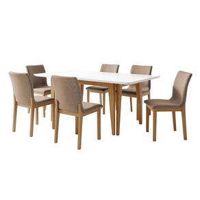 Conjunto Sala de Jantar 6 Lugares Retangular Tampo Vidro Base Madeira Maciça Mesa e Cadeiras Bella Cinamomo/Off White/Bege - Marrom