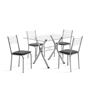 Transforme sua sala de jantar, cozinha ou espaço comercial com o Conjunto de Jantar Moderno e Elegante Aço Nobre. Ele une design sofisticado, durabilidade e conforto, sendo ideal para até 4 lugares.
