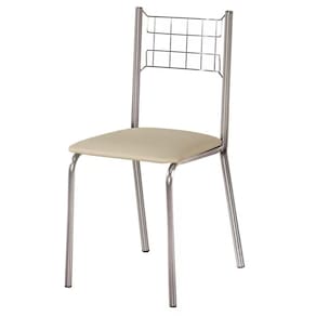 As Cadeiras Íris completam o conjunto com estrutura em aço cromado e assento estofado em Corino com espuma D-23, suportando até 100 Kg. As sapatas antirrisco e antirruído protegem o piso, enquanto o design ergonômico proporciona conforto nas refeições.