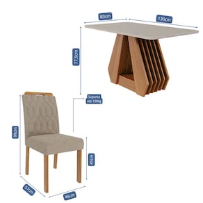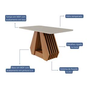 Características: Mesa 100 em MDF. Tampo 35mm com cantos arredondadas. Bordas do tampo Chanfradas com acabamento em laca. Vidro 4mm temperado e pintado. Base da mesa com fixação oculta. Cadeira com pés em MDF 25mm, com bordas laqueadas. Moldura da cadeira em MDF 25mm, com bordas laqueadas. Espuma de alta densidade. Encosto estofado com bordado frente e verso.