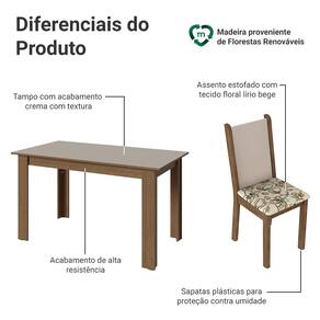 O assento com tecido Lírio Bege das cadeiras traz uma estampa floral que acrescenta delicadeza ao conjunto. Contribuindo para um ambiente acolhedor e elegante na sala de jantar.