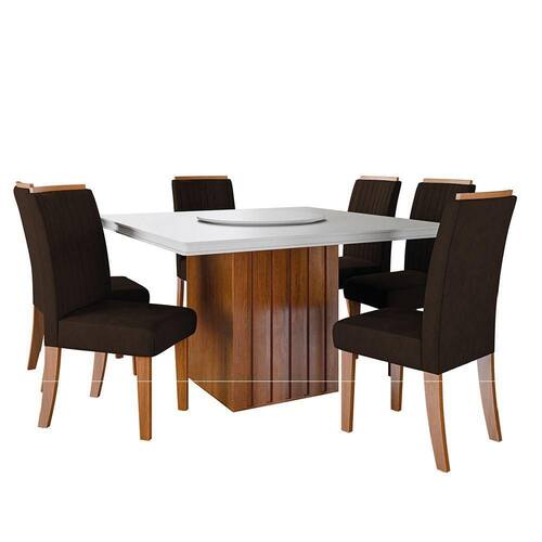 MODELO: Conjunto de Mesa Amsterdã New Tampo Giratório para Sala de Jantar 1,36m com 6 Cadeiras Grécia