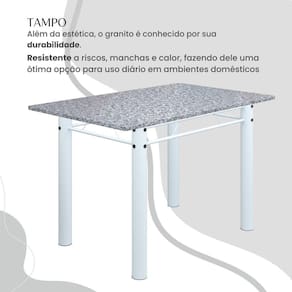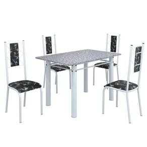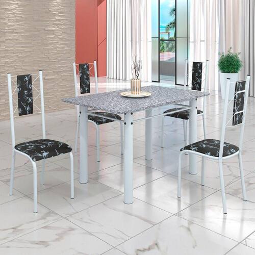 Conjunto Sala de Jantar Bahia Mesa Tubo 120x75cm Tampo Pedra Granito Ocre com 4 Cadeiras Preto Floral/Branco
