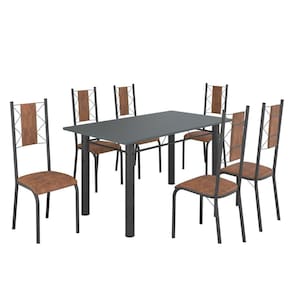Conjunto Sala de Jantar Bahia Mesa Tubo 140x75cm Tampo Madeira com 6 Cadeiras Courino Marrom/mart. Prata