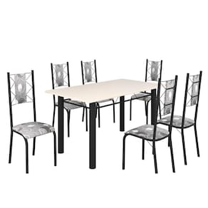 O Conjunto Sala de Jantar Bahia é uma ótima escolha para quem busca combinar estilo e praticidade. Este conjunto apresenta uma mesa retangular com um design elegante e moderno, acompanhada por seis cadeiras. A mesa tem uma estrutura tubular de 3", que oferece estabilidade ao conjunto. O tampo em madeira MDP com acabamento em laca off white oferece um visual elegante e clean. A laca off white confere um toque de luminosidade e sofisticação à superfície, enquanto o MDP a torna adequada para o uso diário. Essa combinação cria um visual contemporâneo e versátil sendo opção prática e estilosa para diversos ambientes. As seis cadeiras incluídas no conjunto apresentam um design que combina harmoniosamente com a mesa. Seu conforto é garantido pelo estofamento e pelo assento anatômico. Acabamento da Cadeira/Banco: Pintura Texturizada Acabamento da Mesa: Pintura Texturizada Acompanha Manual de Instalação: Sim Almofada do assento: Fixa Ambiente Principal: Sala de Jantar Cadeira/Banco estofada: Sim Cadeira/Banco suporta até: 120 Complexidade da Montagem: Média: pode ser montado por mais de uma pessoa e/ou necessite de maior conhecimento para montagem Cor: Paraopeba/ Preto Fosco Cor do Produto: Paraopeba/ Preto Fosco Enchimento do Assento: Espuma D-12 Escala de Brilho: Semi-Fosco Espessura do Tampo: 15 Estrutura do Assento: Assento em MDP de 15mm c/ courino. Formato do Tampo: Retangular Itens Inclusos: 1 Mesa, 6 Cadeiras, Kit Ferragens e Manual de Montagem Linha ou Coleção: Bahia Manual de Montagem e Instalação: https://cdn2.madeiramadeira.com.br/atributo/moveis-teixeira/1515543-base-3-1-40-mdp.pdf Material da Base da Mesa: Aço Material da Estrutura da Cadeira: Aço Material Principal das Cadeiras/Bancos: Aço Medida da Base (A x L x P): 75,5cm x 65cm x 112cm Medida da Cadeira/Banco (A x L x P): 100cm x 36cm x 52cm Medida da Mesa (A x L x P): 75cm x 140cm x 75cm Medida do Tampo (L x C x E): 140cm x 75cm x 1,5cm Mesa suporta até: 8 Necessita Montagem: Sim Origem do Produto: Nacional Peso da Cadeira/Banco: 3.04 Peso da Mesa: 20.82 Possui Apoio para Braços: Não Possui Apoio Para os Pés: Não Possui Rodízio: Não Possui Suporte Giratório: Não Quantidade de Cadeiras: 6 Recomendações de Uso, Manutenção e Limpeza: Usar um pano de tecido macio e seco, evitar detergentes, alvejantes e produtos químicos de limpeza; no tampo usar tecido macio levemente umedecido. Revestimento da Cadeira/Banco: Courino Sistema de Montagem: Parafusos Tipo de Assento: Fixo Tipo de Encosto: Estofado Ean: 7909903415597