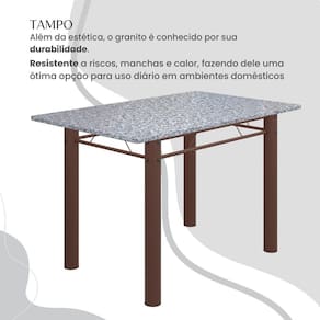 O Conjunto Sala de Jantar Bahia é uma ótima escolha para quem busca combinar estilo e praticidade. Este conjunto apresenta uma mesa retangular com um design elegante e moderno, acompanhada por seis cadeiras. A mesa tem uma estrutura tubular de 3", que oferece estabilidade ao conjunto. O tampo em pedra granito ocre apresenta uma estética sofisticada e acolhedora. A tonalidade ocre adiciona calor e elegância ao ambiente, enquanto a pedra granito oferece durabilidade e resistência a riscos e manchas. Essa combinação de cores marromis e resistência prática resulta em um visual clássico e funcional, tornando o tampo em pedra granito ocre uma ótima escolha para aprimorar sua sala de jantar. As seis cadeiras incluídas no conjunto apresentam um design que combina harmoniosamente com a mesa. Acabamento da Cadeira/Banco: Pintura Texturizada Acabamento da Mesa: Pintura Texturizada Acompanha Manual de Instalação: Sim Almofada do assento: Fixa Ambiente Principal: Sala de Jantar Cadeira/Banco estofada: Sim Cadeira/Banco suporta até: 120 Complexidade da Montagem: Média: pode ser montado por mais de uma pessoa e/ou necessite de maior conhecimento para montagem Cor: Marrom Cor do Produto: Marrom Enchimento do Assento: Espuma D-12 Enchimento do Encosto: Espuma D-12 Escala de Brilho: Semi-Fosco Espessura do Tampo: 18 Estrutura do Assento: Assento em MDP de 15mm c/ courino. Estrutura do Encosto: MDP de 15mm, espuma 1,2mm, courino, ferro 4,5. Formato do Tampo: Retangular Itens Inclusos: 1 Mesa, 6 Cadeiras, Kit Ferragens e Manual de Montagem Linha ou Coleção: Bahia Manual de Montagem e Instalação: https://cdn2.madeiramadeira.com.br/atributo/moveis-teixeira/1501212-base-3-1-40-pedra.pdf Material da Base da Mesa: Aço Material da Estrutura da Cadeira: Aço Material Principal das Cadeiras/Bancos: Aço Medida da Base (A x L x P): 75,5cm x 65cm x 112cm Medida da Cadeira/Banco (A x L x P): 100cm x 36cm x 52cm Medida da Mesa (A x L x P): 75cm x 140cm x 75cm Medida do Tampo (L x C x E): 140cm x 75cm x 1,8cm Mesa suporta até: 8 Necessita Montagem: Sim Origem do Produto: Nacional Peso da Cadeira/Banco: 3.04 Peso da Mesa: 64.23999999999999 Possui Apoio para Braços: Não Possui Apoio Para os Pés: Não Possui Rodízio: Não Quantidade de Cadeiras: 6 Recomendações de Uso, Manutenção e Limpeza: Usar um pano de tecido macio e seco, evitar detergentes, alvejantes e produtos químicos de limpeza; no tampo usar tecido macio levemente umedecido. Revestimento da Cadeira/Banco: Courino Sistema de Montagem: Parafusos Tipo de Assento: Fixo Tipo de Encosto: Estofado Ean: 7909903411391
