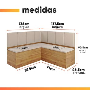 DIFERENCIAL: Canto com Baú para armazenar itens, ótimo divisor de ambiente e revestido com veludo, Cadeira feita em madeira maciça, Mesa com tampo em MDF super resistente.