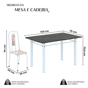 Quer deixar sua casa completa e prática? Uma dica bacana de como transformar o seu lar, deixando-o mais receptivo e bonito? Então você precisa de móveis indispensáveis para deixar seu lar muito mais aconchegante, receptivo e sempre disponível para receber a visita de amigos, familiares e convidados. Você vai se apaixonar por este incrível e moderno Conjunto de Mesa com 4 Cadeiras. Ideal para cozinha, ele é a melhor opção para completar o espaço que você desejar. Aproveite!! Medida da Mesa (A x L x P): 75,8 cm x 120 cm x 75 cm Peso da Mesa: 43,48 kg Mesa suporta até: 10.0000 Acabamento da Cadeira/Banco: Pintura Texturizada Acabamento da Mesa: Pintura Texturizada Ambiente Principal: Cozinha Cadeira/Banco Estofada: Encosto e Assento Estofados Cadeira/Banco estofada: Encosto e Assento Estofados Cadeira/Banco suporta até: 120.0000 codigo_ean: 7900288153173 Complexidade da Montagem: Baixa: pode ser montado por uma pessoa sozinha Cor: Bege / Branco Cor do Produto: Bege / Branco Cor Secundária: Bege De Canto (Canto Alemão): Não Enchimento do Assento: Espuma D-16 Escala de Brilho: Semi-Brilho Espessura do Tampo: 1,5 mm Estrutura do Assento: MDP Formato do Tampo: Retangular Itens Inclusos: 1 Mesa, 4 Cadeiras, Kit Ferragens e Manual de Montagem Linha ou Coleção: Lívia Manual de Montagem e Instalação: https://product-hub-prd.madeiramadeira.com.br/391374684/documents/d6039b5a-4f71-4485-92d0-398d6b7ea51e12743219352817418949403106.pdf Marca: Soma Móveis Material da Base da Mesa: Aço Material da Estrutura da Cadeira: Aço Material do Tampo: Ardósia Medida da Cadeira/Banco (A x L x P): 94 cm x 36 cm x 40 cm Medida do Tampo (L x C x E): 120cm x 75cm x 1,5 cm Mesa Extensível: Não Necessita Montagem: Sim Origem do Produto: Nacional Peso da Cadeira/Banco: 2,28 kg Possui Apoio Para os Pés: Não Quantidade de Cadeiras: 4 Quantidade de Lugares: 04 Recomendações de Uso, Manutenção e Limpeza: Não permitir que molhe os pés da base, usar um pano de tecido macio e seco, evitar detergentes, alvejantes e produtos químicos de limpeza; no tampo usar tecido macio levemente umedecido. Revestimento da Cadeira/Banco: Couro Ecológico Sistema de Montagem: Parafusos