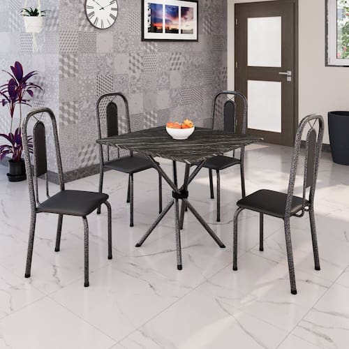 Conjunto Sala de Jantar com 4 Cadeiras Lívia Preto/Prata