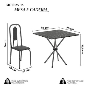 Medida da Mesa (A x L x P): 75,8 cm x 70 cm x 70 cm