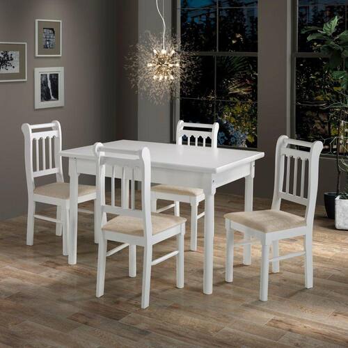 Conjunto Sala de Jantar Com 4 Cadeiras Madeira Maciça Mv Outlet Branco - Mv Outlet