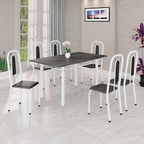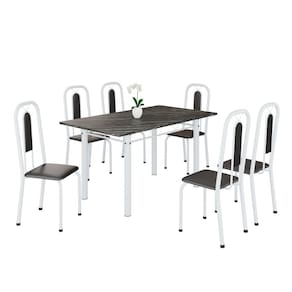 Quer deixar sua casa completa e prática? Uma dica bacana de como transformar o seu lar, deixando-o mais receptivo e bonito? Então você precisa de móveis indispensáveis para deixar seu lar muito mais aconchegante, receptivo e sempre disponível para receber a visita de amigos, familiares e convidados. Você vai se apaixonar por este incrível e moderno Conjunto de Mesa com 6 Cadeiras. Ideal para cozinha, ele é a melhor opção para completar o espaço que você desejar. Aproveite!! Medida da Mesa (A x L x P): 75,8 cm x 140 cm x 75 cm Peso da Mesa: 59,42 kg Mesa suporta até: 10.0000 Acabamento da Cadeira/Banco: Pintura Texturizada Acabamento da Mesa: Pintura Texturizada Ambiente Principal: Cozinha Cadeira/Banco Estofada: Encosto e Assento Estofados Cadeira/Banco estofada: Encosto e Assento Estofados Cadeira/Banco suporta até: 120.0000 codigo_ean: 7900288160621 Complexidade da Montagem: Baixa: pode ser montado por uma pessoa sozinha Cor: Preto / Branco Cor do Produto: Preto / Branco Cor Secundária: Cinza De Canto (Canto Alemão): Não Enchimento do Assento: Espuma D-16 Escala de Brilho: Semi-Brilho Espessura do Tampo: 1,5 mm Estrutura do Assento: MDP Formato do Tampo: Retangular Itens Inclusos: 1 Mesa, 6 Cadeiras, Kit Ferragens e Manual de Montagem Linha ou Coleção: Lívia Manual de Montagem e Instalação: https://product-hub-prd.madeiramadeira.com.br/834158804/documents/8a8348ab-da5d-434e-b1bd-403824b9452282747454352817422371460058.pdf Marca: Soma Móveis Material da Base da Mesa: Aço Material da Estrutura da Cadeira: Aço Material do Tampo: Ardósia Medida da Base (A x L x P): 75cm x 63,5 cm x 108 cm Medida da Cadeira/Banco (A x L x P): 94 cm x 36 cm x 40 cm Medida do Tampo (L x C x E): 140cm x 75cm x 1,5 cm Mesa Extensível: Não Necessita Montagem: Sim Origem do Produto: Nacional Peso da Cadeira/Banco: 2,28 kg Possui Apoio Para os Pés: Não Quantidade de Cadeiras: 6 Quantidade de Lugares: 06 Recomendações de Uso, Manutenção e Limpeza: Não permitir que molhe os pés da base, usar um pano de tecido macio e seco, evitar detergentes, alvejantes e produtos químicos de limpeza; no tampo usar tecido macio levemente umedecido. Revestimento da Cadeira/Banco: Couro Ecológico Sistema de Montagem: Parafusos Marca: Não Informado