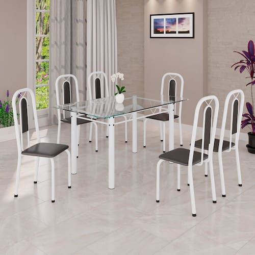 Aço, Vidro, MDP, Espuma, Couro EcológicoVendido e entregue por MadeiraMadeira