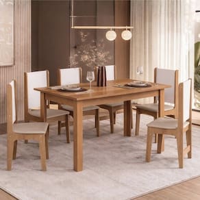 Conjunto Sala de Jantar com 6 Cadeiras Luana Yescasa Mel/Off White - Marrom