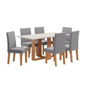 Mesas são indispensáveis para o funcionamento da casa e é no cômodo de confraternização que elas ganham protagonismo. Composto por peças de muito charme, o Conjunto Hill e Venus torna o uso desse móvel importante com 6 cadeiras para garantir uma usabilidade plena para o seu dia a dia Medida da Mesa (A x L x P): A:80 x L:160 x P:80cm Peso da Mesa: 31 kg Mesa suporta até: 50.0000 Acabamento da Cadeira/Banco: Pintura UV Acabamento da Mesa: Pintura UV Ambiente Principal: Sala de Jantar Cadeira/Banco Estofada: Encosto e Assento Estofados Cadeira/Banco estofada: Encosto e Assento Estofados Cadeira/Banco suporta até: 90.0000 codigo_ean: 7908308785571 Complexidade da Montagem: Média: pode ser montado por mais de uma pessoa e/ou necessite de maior conhecimento para montagem Cor: Mel/Blonde/Cinza Cor da Base: Marrom Cor do Produto: Mel/Blonde/Cinza Cor do Tampo: Bege Cor Secundária: Cinza De Canto (Canto Alemão): Não Enchimento do Assento: Espuma D-20 Enchimento do Encosto: Espuma D-12 Espessura do Tampo: 25 mm Estrutura do Assento: MDP/Espuma Estrutura do Encosto: MDP/Espuma Formato do Tampo: Retangular Informações Complementares: Sala de Jantar 6 lugares Manual de Montagem e Instalação: https://product-hub-prd.madeiramadeira.com.br/840433/documents/67e13dba-0db4-45a6-9e36-1ce094ab8d19esapaladiumcomcadeiravenus.pdf Manutenção: Limpar com pano levemente umedecido com água Material da Base da Mesa: MDP Material da Estrutura da Cadeira: MDF/MDP Material do Tampo: MDP Medida da Cadeira/Banco (A x L x P): A:98,5 x L:42 x P:48cm Medida do Tampo (L x C x E): 160cm x 80cm x 2,5cm Mesa Extensível: Não Necessita Montagem: Sim Origem do Produto: Nacional Peso da Cadeira/Banco: 7,1 kg Possui Apoio para Braços: Não Possui Apoio Para os Pés: Não Possui Vidro: Não Quantidade de Cadeiras: 6 Quantidade de Lugares: 06 Recomendações de Uso, Manutenção e Limpeza: Limpar com pano levemente umedecido com água Revestimento da Cadeira/Banco: Veludo Sistema de Montagem: Parafusos; Cavilhas Ean: 7908308785571