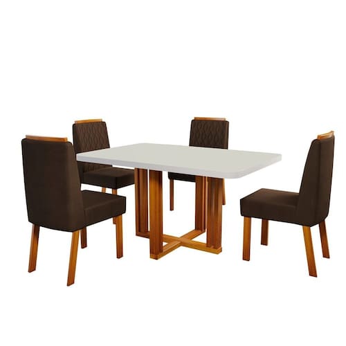 A Sala de Jantar Paolla é a escolha ideal para quem busca combinar estilo e funcionalidade em um ambiente aconchegante para as refeições. Este conjunto é composto por uma mesa quadrada com tampo de 90x90 cm e quatro cadeiras, criando um espaço perfeito para reunir familiares e amigos. A mesa possui uma estrutura robusta feita inteiramente em 100% MDF, garantindo durabilidade e estabilidade. Seu tampo de vidro confere um toque sofisticado ao conjunto e é fácil de limpar. A quina arredondada do tampo proporciona segurança e um design moderno. Além disso, a borda em PVC da mesa oferece proteção adicional contra desgastes e impactos. Medida da Mesa (A x L x P): 80x80x120 Peso da Mesa: 36,5 kg Mesa suporta até: 80.0000 Acabamento da Cadeira/Banco: Pintura UV Acabamento da Mesa: Pintura UV Ambiente Principal: Sala de Jantar Cadeira/Banco Estofada: Encosto e Assento Estofados Cadeira/Banco estofada: Encosto e Assento Estofados Cadeira/Banco suporta até: 140.0000 codigo_ean: 7900288094667 Complexidade da Montagem: Baixa: pode ser montado por uma pessoa sozinha Cor: Naturalle/Marrom Cor do Produto: Naturalle/Marrom Cor Secundária: Marrom De Canto (Canto Alemão): Não Enchimento do Assento: Espuma D-26 Escala de Brilho: Brilhante Espessura do Tampo: 50 mm Formato do Tampo: Retangular Itens Inclusos: 1 Mesa + 4 Cadeiras Manual de Especificação Técnica: https://product-hub-prd.madeiramadeira.com.br/981641/documents/e772cd87-95e7-400c-8903-ec2ac2f0727977311742243240981641150112.pdf Manual de Montagem e Instalação: https://product-hub-prd.madeiramadeira.com.br/981641/documents/7ab07231-a76e-4330-9105-f633dcfef56d77301742243238981641150111.pdf Marca: Móveis Bom Pastor Material da Base da Mesa: MDF Material da Estrutura da Cadeira: MDF Material do Tampo: Vidro/MDF Medida da Cadeira/Banco (A x L x P): 98x46x61 Medida do Tampo (L x C x E): 80x120x5 Mesa Extensível: Não Necessita Montagem: Sim Origem do Produto: Nacional Peso da Cadeira/Banco: 12 kg Possui Apoio Para os Pés: Não Quantidade de Cadeiras: 4 Quantidade de Lugares: 04 Recomendações de Uso, Manutenção e Limpeza: limpar com flanela umida os vidro e o MDF apenas com uma flanela seca. Revestimento da Cadeira/Banco: Veludo Sistema de Montagem: Parafusos, cavilhas