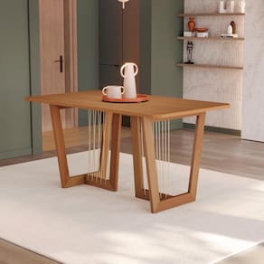 Para quem busca por modernidade e estilo, o Conjunto CSJ325CA da Linha Sala de Jantar Premium Kappesberg vai conquistar o seu espaço. Robusta e com um design moderno, a base é em madeira de eucalipto, garantindo durabilidade e uma beleza única, além de permitir ser montada de duas formas. Retangular, o detalhe em corda garante um acabamento leve e moderno ao espaço.