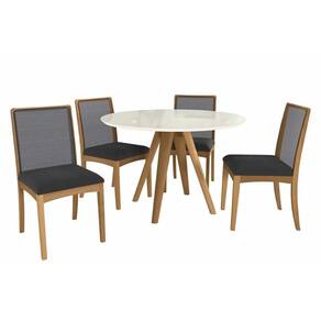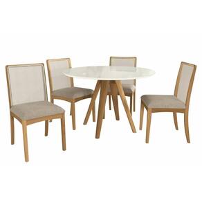 Sala de Jantar Completa Duna Premium Madeira Maciça c/ Tampo Madeirado c/ Vidro 120x120cm e 4 Cadeiras Lara Carvalho/Off White - Boucle Bege Fendi - Kappesberg