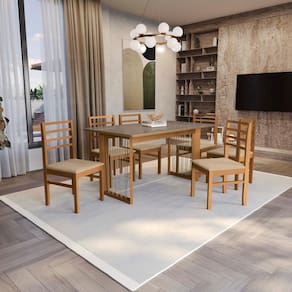 Conjunto Sala De Jantar Elisa Em Madeira Maciça 6 Cadeiras Boucle Bege