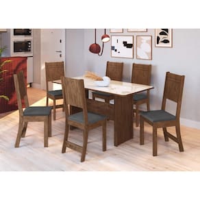 Renove sua sala de jantar com o Conjunto Fidelitá Atenas 150cm, que combina elegância, resistência e conforto em cada detalhe. Com mesa espaçosa e seis cadeiras com assento estofado, este conjunto é perfeito para reunir a família ou receber convidados com muito estilo. A combinação das cores Noce e Off-White, somada ao assento em tecido grafite, cria um ambiente moderno, acolhedor e sofisticado.