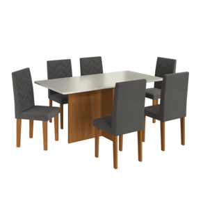 Conjunto Sala De Jantar Fidelitá Itália Mesa Tampo de Madeira 170cm Com 6 Cadeiras Freijó/Off-White Assento Grafite - Off White