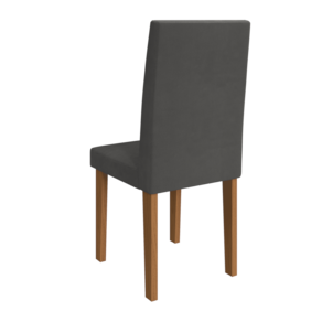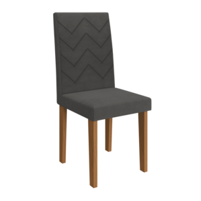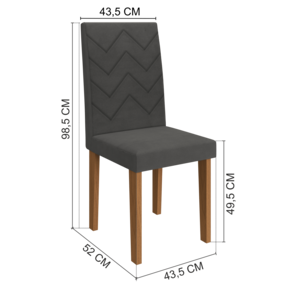 As cadeiras são fabricadas com material resistente como, chapas de MDF 15mm. O encosto e o assento possuem estofamento de espumas de boa densidade aumentando a durabilidade e o conforto. Para completar, contam com revestimento em tecido velveteen Grafite e possui detalhes bordados no encosto que deixa o conjunto mais bonito.