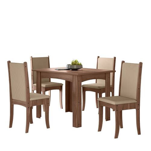 O conjunto Giovana destaca-se pela impressão dos detalhes amadeirados, replicando um design clean e despojado. O conjunto da um toque de modernidade ao ambiente, deixando o espaço das refeições ainda mais charmoso. Os acabamentos oferecem maior qualidade e durabilidade ao móvel. A imagem é ilustrativa. Itens inclusos:1 mesa;4 cadeiras estofadas. Obs: O produto segue com manual de instruções e com todas as ferragens necessárias para sua montagem. Não disponibilizamos serviço de montagem.