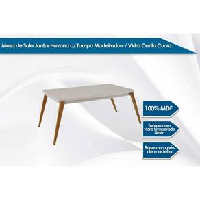 Mesa de Sala Jantar Havana c/ Tampo Madeirado c/ Vidro Canto Curvo 120X80cm Madeira Capuccino/Off White - Rufato