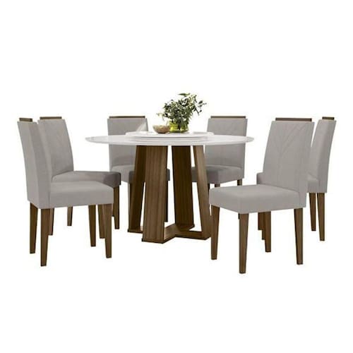 Produto: Conjunto Sala de Jantar Isabela 1,35m com Tampo Giratorio e 6 Cadeiras Amanda Imbuia / Off White / Animalle Bege - New Ceval Cor: Imbuia / Off White / Animalle Bege Garantia: 03 meses Descrição: Mesa Isabela 1350X1350 Comprimento: 135,00 cm Largura: 135,00 cm Altura: 80,00 cm Peso: 46,60 Kg Estrutura: Pés: MDF 25mm - Tampo: MDF 18mm + Vidro 3mm Formato do Tampo: Redondo Espessura do Tampo: 18mm Tipo de Vidro: Normal Espessura do Vidro: 3mm Necessita Montagem: Sim