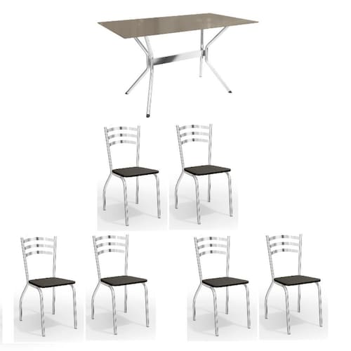 O Conjunto Sala de Jantar Linha Crome da Kappesberg combina elegância, conforto e qualidade, o conjunto ideal para horas de lazer! É composto por 1 mesa com Tampo de Vidro Temperado na cor Bronze, 1 base em Metal Cromado e 6 cadeiras com estrutura de Metal Cromado, garantindo um conjunto completo e moderno. As 6 cadeiras possuem assento com espuma de alta densidade, além disso, são 100% automatizados e acabado com 100% de polimento, proporcionando um alto padrão de qualidade, conforto e durabilidade. Seu estofamento na cor Preta, confere um visual elegante e moderno, tornando-o uma ótima escolha para qualquer sala de jantar. Aproveite a qualidade que o Conjunto da Kappesberg oferece!