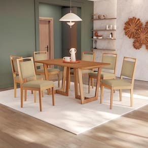 O destaque fica para o puxador em madeira na parte superior, que facilita o manuseio e evita sujar o tecido, garantindo um design e acabamento único para seu espaço, além de uma sala de jantar mais completa. Renove e transforme seu espaço com o Conjunto de Mesa da Sala de Jantar Premium Kappesberg.