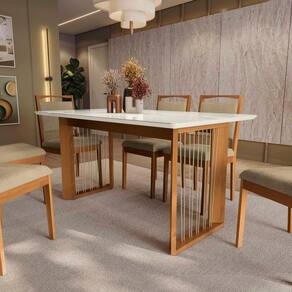 O destaque fica para o puxador em madeira na parte superior, que facilita o manuseio e evita sujar o tecido, garantindo um design e acabamento único para seu espaço, além de uma sala de jantar mais completa. Renove e transforme seu espaço com o Conjunto de Mesa da Sala de Jantar Premium Kappesberg.
