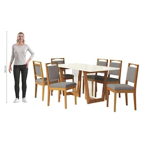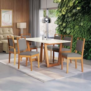 O destaque fica para o puxador em madeira na parte superior, que facilita o manuseio e evita sujar o tecido, garantindo um design e acabamento único para seu espaço, além de uma sala de jantar mais completa. Renove e transforme seu espaço com o Conjunto de Mesa da Sala de Jantar Premium Kappesberg.