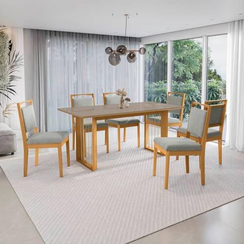 O destaque fica para o puxador em madeira na parte superior, que facilita o manuseio e evita sujar o tecido, garantindo um design e acabamento único para seu espaço, além de uma sala de jantar mais completa. Renove e transforme seu espaço com o Conjunto de Mesa da Sala de Jantar Premium Kappesberg.