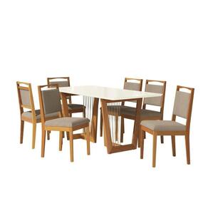 Medindo 79,5cm de altura, 99,2cm de largura e 75cm de profundidade, é perfeita para ambientes amplos, e combinada ao tampo retangular c/ vidro, acomoda até seis pessoas. Em MDF na cor off white, o destaque fica para o vidro na mesma cor, garantindo elegância para a composição. Medindo 180cm x 90cm e espessura de 30mm, ele suporta até 90kg e suas bordas arredondadas garantem um design moderno.