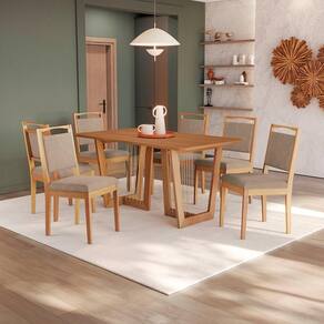 Para quem busca por modernidade e estilo, o Conjunto CSJ327CA da Linha Sala de Jantar Premium Kappesberg vai conquistar o seu espaço. Robusta e com um design moderno, a base é em madeira de eucalipto, garantindo durabilidade e uma beleza única, além de permitir ser montada de duas formas. Retangular, o detalhe em corda garante um acabamento leve e moderno ao espaço. Medindo 79,5cm de altura, 99,2cm de largura e 75cm de profundidade, é perfeita para ambientes amplos, e combinada ao tampo retangular c/ vidro, acomoda até seis pessoas. Em MDP de 25mm, o tampo conta com recorte reto nas pontas, garantindo segurança e praticidade. Medindo 160cm x 90cm, suporta até 90kg e com pintura touch na cor canela, conta com a textura dos veios da madeira, garantindo a sensação de aconchego ao ambiente. Já as cadeiras que compõem o conjunto, no modelo Lina, também em madeira de eucalipto, são entregues montadas, suportando até 120kg e combinando com todos os momentos. Medindo 95cm de altura, sendo 50cm a altura do assento, 43,5cm de largura e 52,5cm de profundidade, para mais comodidade, ela possui assento e encosto estofados e recobertos com tecido linho fendi, o que garante um toque suave e gostoso, proporcionando conforto em todos os momentos. O destaque fica para o puxador em madeira na parte superior, que facilita o manuseio e evita sujar o tecido, garantindo um design e acabamento único para seu espaço, além de uma sala de jantar mais completa. Renove e transforme seu espaço com o Conjunto de Mesa da Sala de Jantar Premium Kappesberg. Medidas: - 83 cm de altura - 160 cm de largura - 90 cm de profundidade Itens inclusos: - Uma (1) mesa em Madeira Maciça - Seis (6) Cadeiras em Madeira Maciça - Estrutura em MDF Código do produto: CSJ327CA-A051 Informações importantes: - As imagens são ilustrativas. - A Kappesberg não disponibiliza serviço de montagem (recomendamos a contratação de um profissional qualificado). - O manual de montagem acompanha o produto. - 3 meses de garantia para defeitos de fabricação. Assento: Espuma | Cor: Linho Fendi | Encosto: Almofada lisa | Espuma: Densidade 26 | Matéria-prima: Eucalipto | Duração da garantia: 3 meses | Requer montagem: Sim | Quantidade de caixas de embalagem: 3 | Quantidade de cadeiras: 6 | Montagem: Necessita montagem | Tipo de garantia: Garantia do fabricante | Inclui manual de montagem: Sim