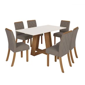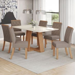 O(a) Conjunto Sala de Jantar Lins 160 Cm Canto Reto com Vidro 6 Cadeiras Natural/Off White e Bege é produzido em MDF e MDP na escala de brilho Brilhante e Fosco, e possui um grau de dificuldade de montagem: Médio.