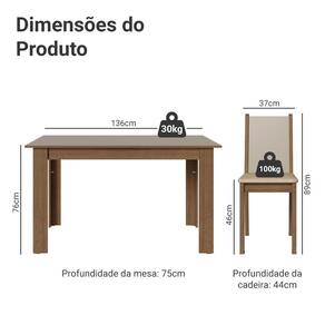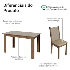 A mesa possui o tampo no tom crema, que traz leveza e combina facilmente com diferentes estilos de decoração. O acabamento amadeirado rustic da base adiciona um toque natural e sofisticado ao conjunto..