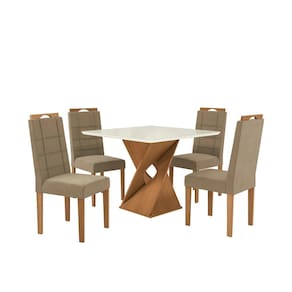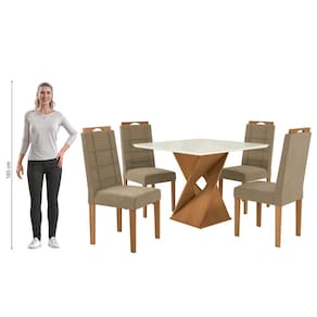 Quando combinada ao tampo quadrado, acomoda até quatro pessoas. Em MDF na cor off white, o destaque fica para o vidro na mesma cor, garantindo elegância para a composição. Medindo 105cm X 105cm e espessura de 30mm, ele suporta até 90kg, e suas bordas arredondadas garantem um design moderno e mais segurança, deixando sua sala de jantar completa e sofisticada. Já as cadeiras que compõem o conjunto, contam com estrutura resistente, em madeira de eucalipto e 97,5cm de altura, sendo 48cm a altura do assento, 42cm de largura e 58cm de profundidade, suportando até 130kg.