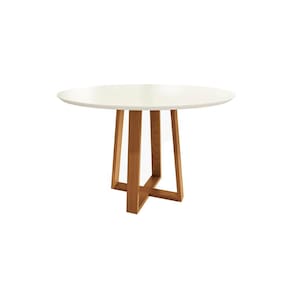 Medindo 77,2cm de altura, 158,8cm de largura e 88,8cm de profundidade, ela possui uma travessa central para mais estabilidade. E quando combinada ao tampo retangular com vidro, acomoda até seis pessoas. Em MDF de 30mm e na cor off white, o destaque fica para o vidro na mesma cor, garantindo um acabamento moderno à composição.