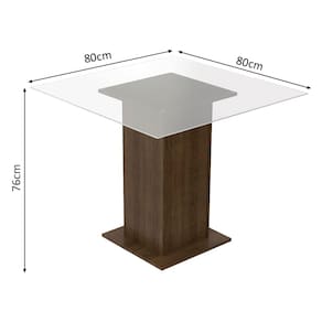 - Uma (1) mesa em pedestal com 78 cm de altura e tampo de vidro incolor de 80 cm x 80 cm