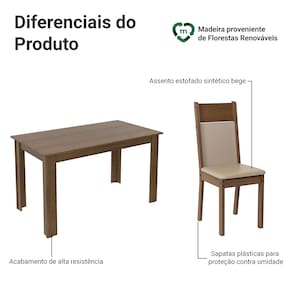 O Conjunto de Jantar Jaíne da Madesa traz praticidade e beleza ao ambiente. A mesa de madeira com pés estruturais é mais firme e segura e o tampo de madeira transmite robustez e firmeza.