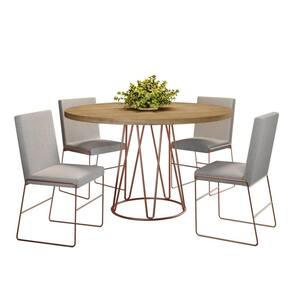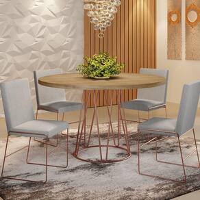 Conjunto Sala de Jantar Mesa 110cm MDF/BP e 4 Cadeiras Dubai Mais Decor Linho Cinza Claro/Cobre/Siena