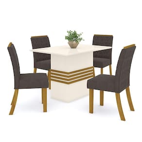 Nada mais gostoso do que um bom papo, uma boa comida, com ótimas companhias e uma decoração maravilhosa envolvendo tudo isso. Você pode aproveitar tudo isso através do design funcional e moderno do Conjunto de Mesa e Cadeiras Estofadas Melinda. A mesa de Jantar Melinda é composta por tampo em MDF inteiro de 25mm acabamento em pintura UV com pintura nas duas faces, garantindo maior qualidade e durabilidade para o móvel. A mesa Melinda é de fácil montagem e ainda garante um novo visual para sua casa. Possui moldura usinada para pega no encosto, evitando assim o contato direto das mãos com o tecido. O encosto possui estofado com espuma de 10 mm e densidade D15 e o assento possui estofado com espuma de 30mm e densidade D23.