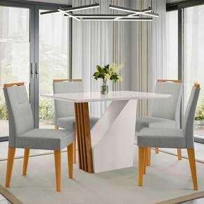 1 Mesa (Tampo + Base/Pés), 4 Cadeiras, kit ferragem e Manual para Montagem.