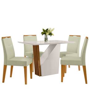 Conjunto Sala de Jantar Mesa 1,20 Veneza com 4 Cadeiras Lectus Ypê/Off White/Ln04 - New Ceval