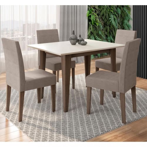 Conjunto Sala de Jantar Mesa 120cm Kate 4 Cadeiras Josi Poliman - Bege Claro